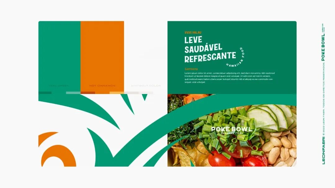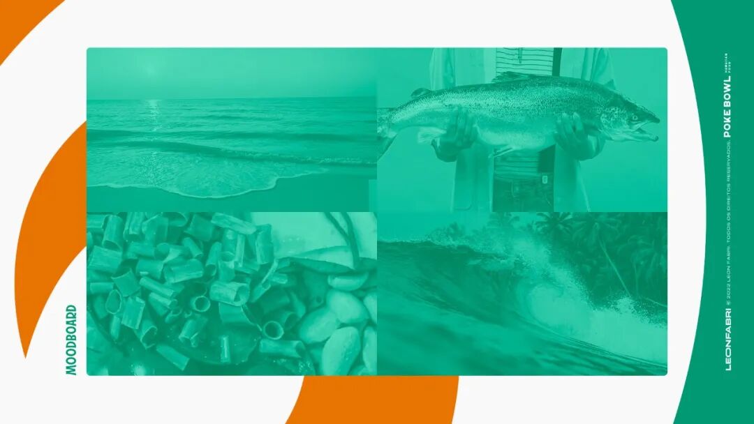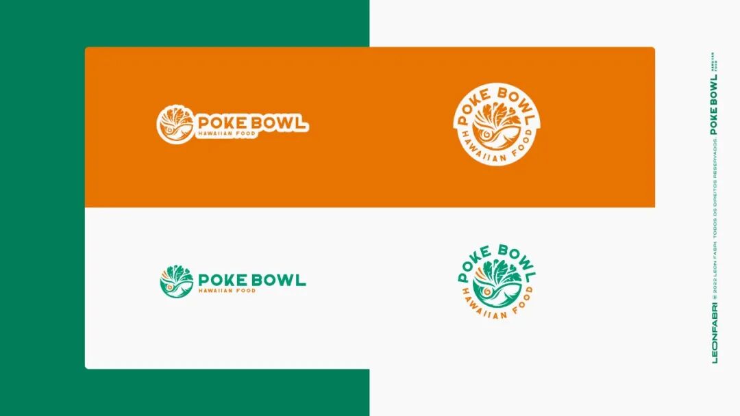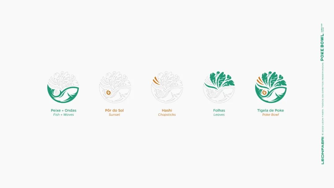 该标志由参考小吃店风格的元素组成,如鱼、波浪、日落、碗和叶子。这个想法是为了传达一个轻盈、健康和清爽的小吃店的感觉。