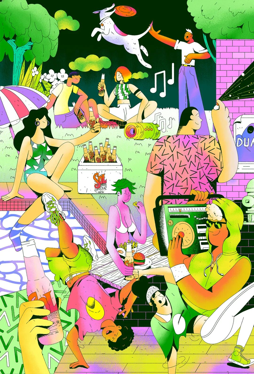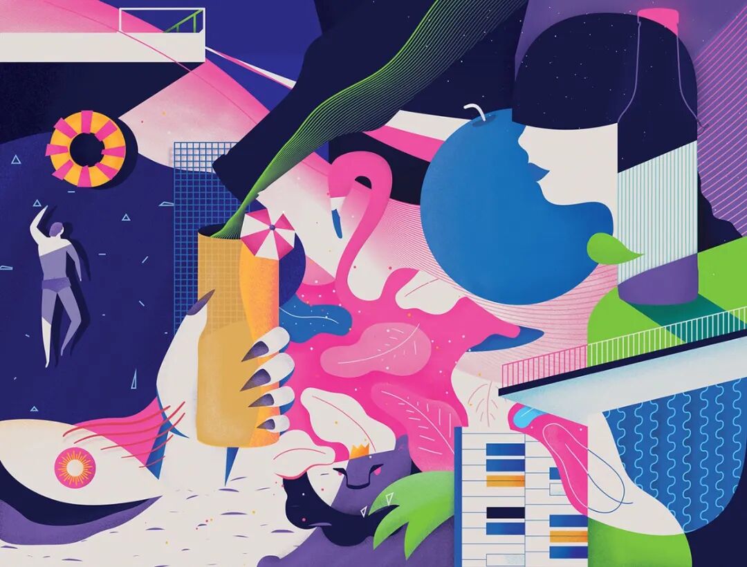 Estudio Pum线条与质感喷漆的奇妙碰撞,总能给你惊喜,这是一家非常成功的平面设计和插画工作室,总部位于巴西和西班牙,成立于2013年。Pum are Maga & Porni,前代理二人组,既是平面设计师,也是热情的插画家。