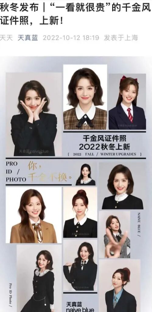 天真蓝的千金证件照,同样高亮“一看就很贵”。