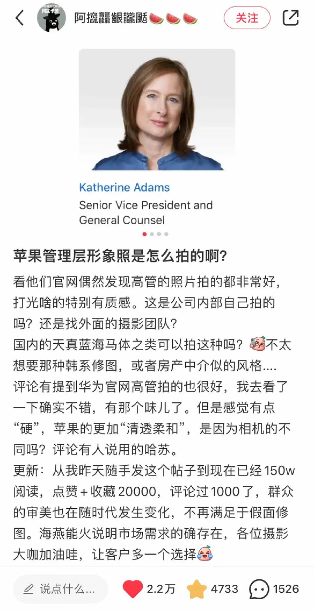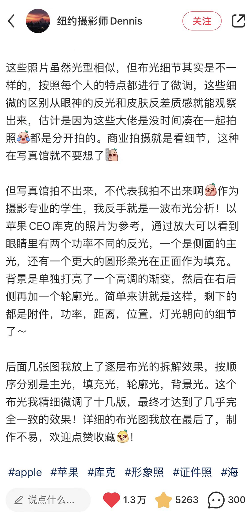 想要动手模仿拍照的也不止我们,在首位网友发现“苹果高管照”的独特魅力后,社交平台上又冒出无数技痒网友的分析帖和实践帖。