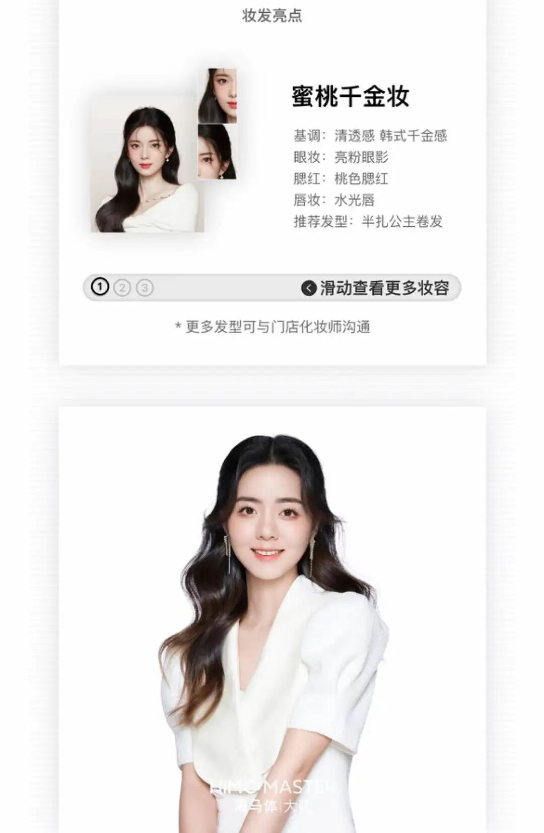 2018年海马体照相馆发布文章“拒绝一成不变,证件照的更多可能性”,其中罗列介绍的证件照虽说比以往在教室里集体拍的证件照好看精致不少,但风格还比较单一。示意图中的模特多穿着西装或OL风套装,展示抿嘴笑和八齿笑,左右脸高度对称,鼻头大小也恰到好处。妆容上,眼影是不易察觉的大地色系,唇色接近玫瑰色。
