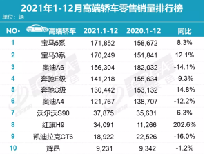 这两个榜单,尤其轿车细分市场,较2020年调整不大,但显著的变化是,除了宝马各车系呈正增长,奔驰和奥迪主力车型都出现较大幅的负增长