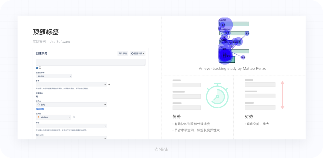适用场景:希望用户快速填写表单,完成任务;当输入项存在主次之分时;对标签扩展性要求高。