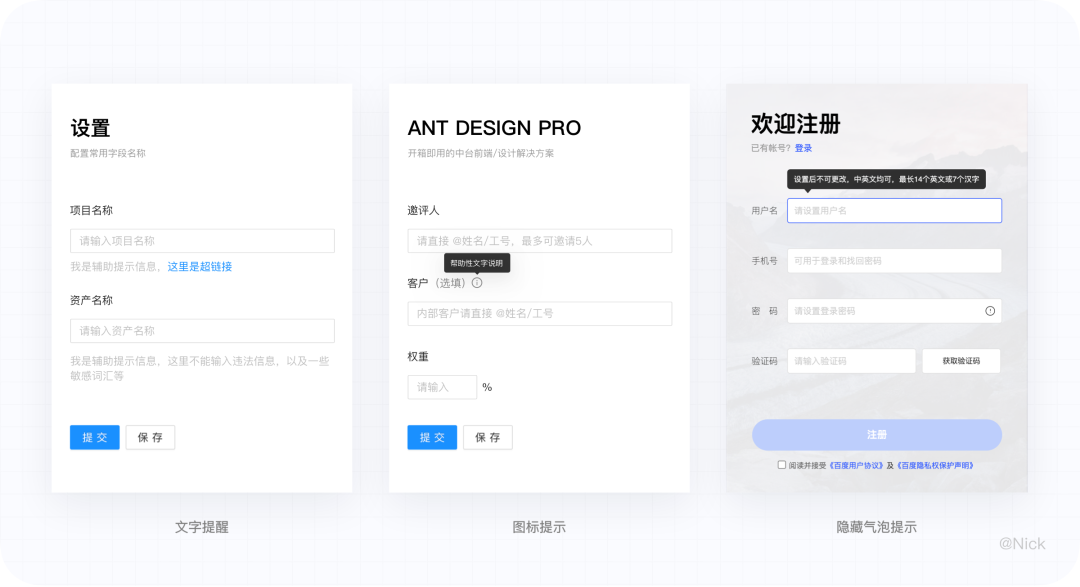 提示信息 – 帮助用户更准确的理解输入域的具体操作。
