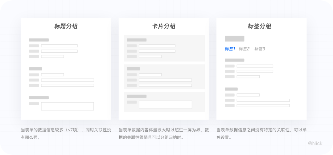 使用场景:适用于一次需要填写很多内容的表单,且不同内容之间存在分类归纳性。