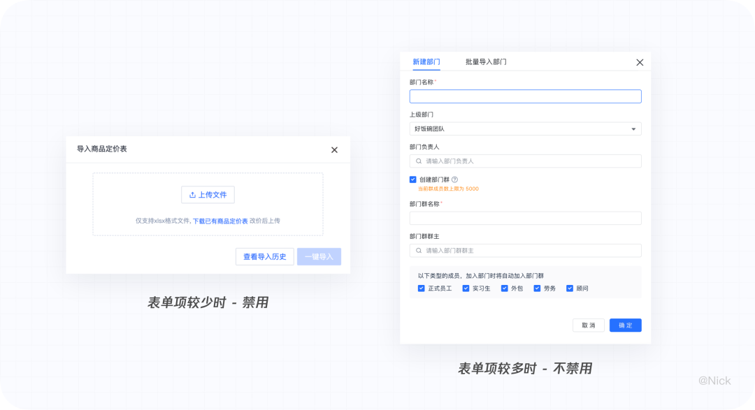 适用场景:表单录入项较少时可考虑使用,建议录入项不超过3个。