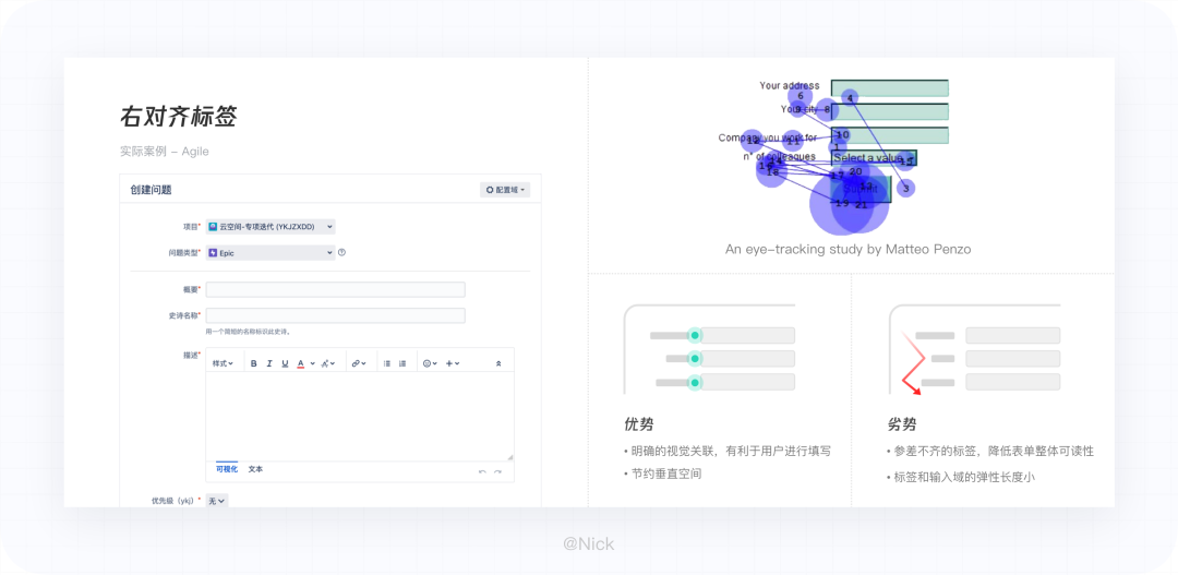 优点:文字开头按阅读视线对齐,方便用户快速浏览表单;节约垂直空间。