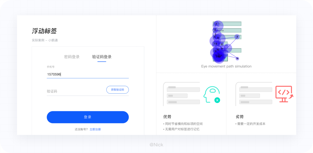 优点:同时节省水平和垂直的空间;标签设计成图标,使表单更灵活和简洁。