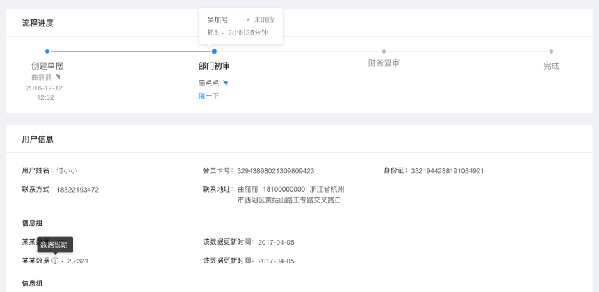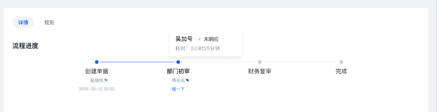 下面这张图的问题是,“流程进度”应该是二级标题,比“单号:…”字体更小,因为一级标题的位置被 tab 取代了。