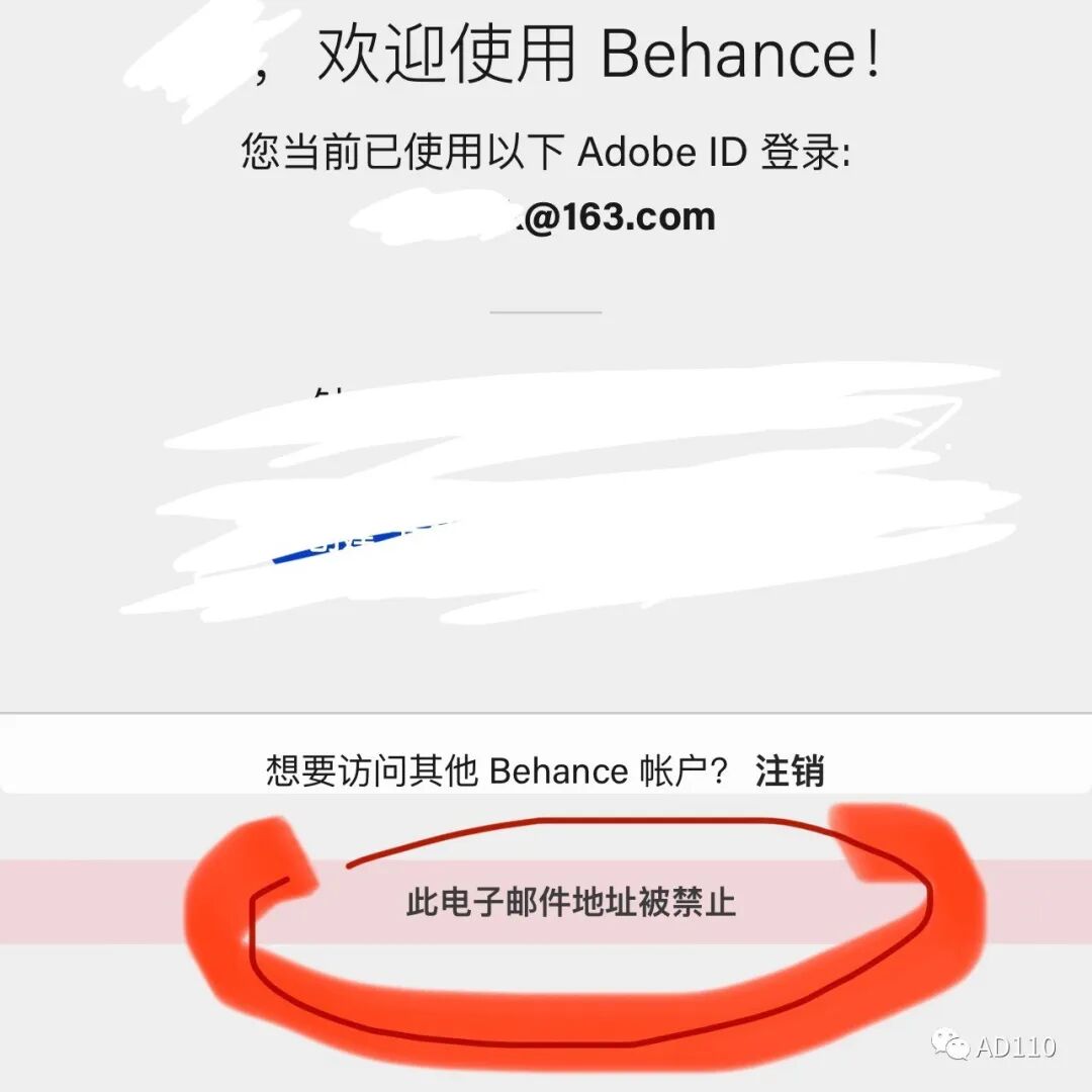 多位国内朋友反馈,登录 Behance 后无法查看发表的作品,往日的收藏也无法浏览。而只要使用 163、126、QQ 等国内 Email 新注册 Behance,则会显示:此电子邮件地址被禁止
