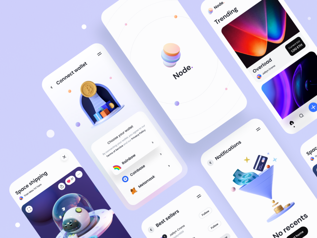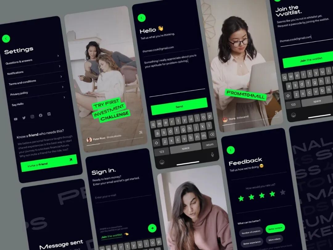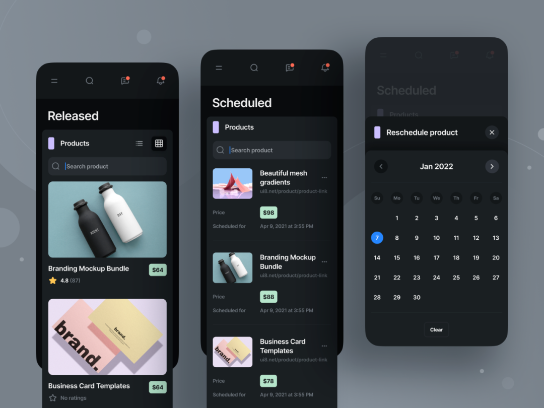 如果你对自己的排版不是太自信,又担心排版太死板,错开展示是一个很容易上手的技巧。只需要把界面稍微错开一下,展示效果就会好很多。下面就是一些Behance大佬用这种手法做的展示效果,可以从背景,作品摆放比例,留白,间距和错开幅度上进行研究学习。