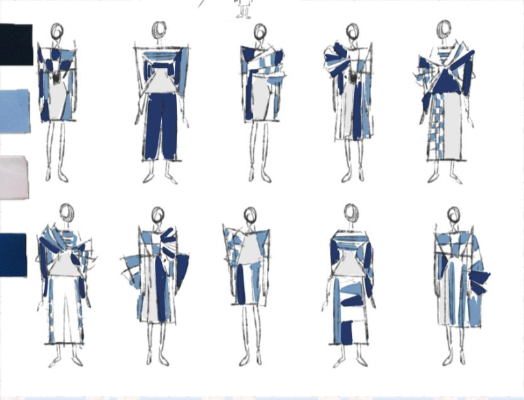 一定要尽早开始准备、规划出比较丰富的内容框架,在制作项目的过程中会出现一个思维的反复、由灵感到草图推进困难的过程,而廓形实验或者样衣独立完成困难的话会有被迫更改思路或者删减页数的情况,所以希望大家开始得越早越好,带着完整的作品集尽早去找导师会有更大优势。