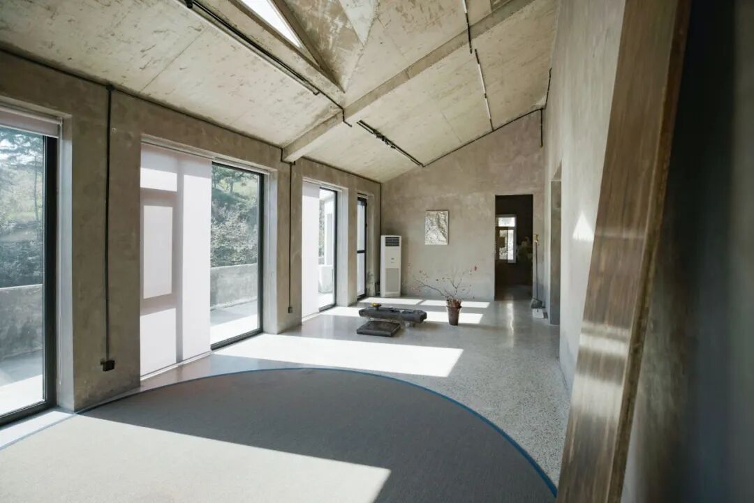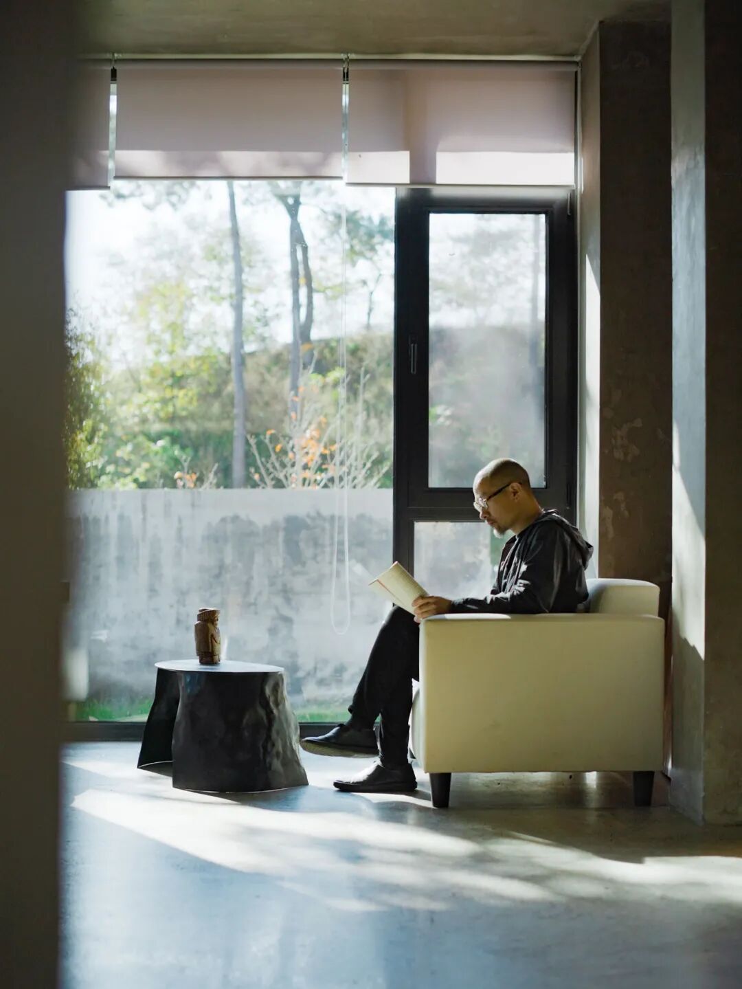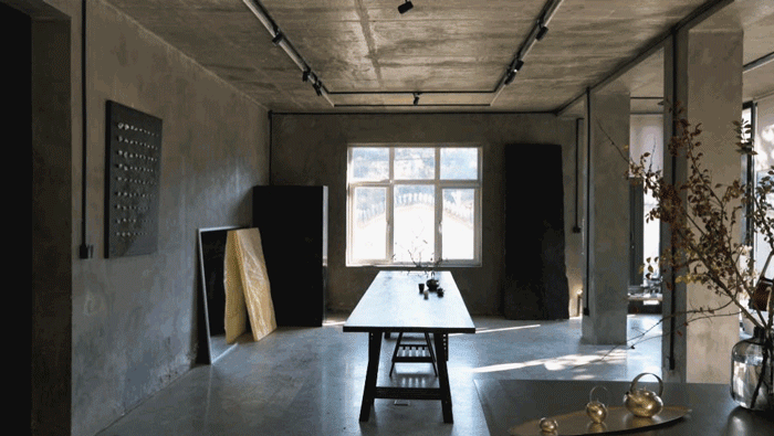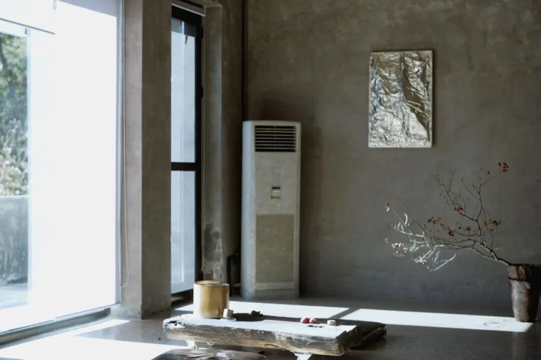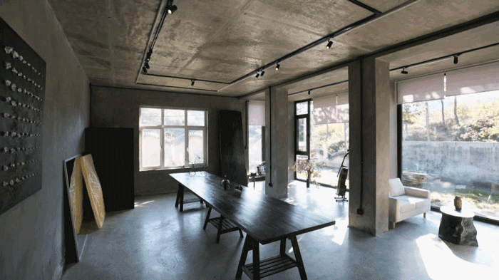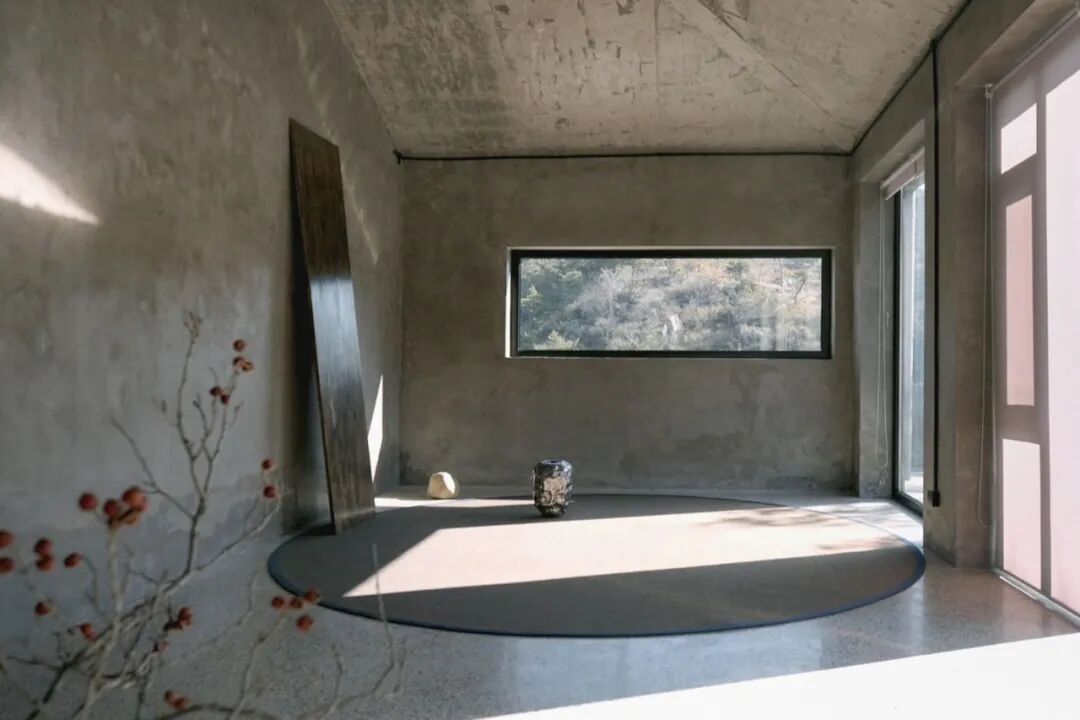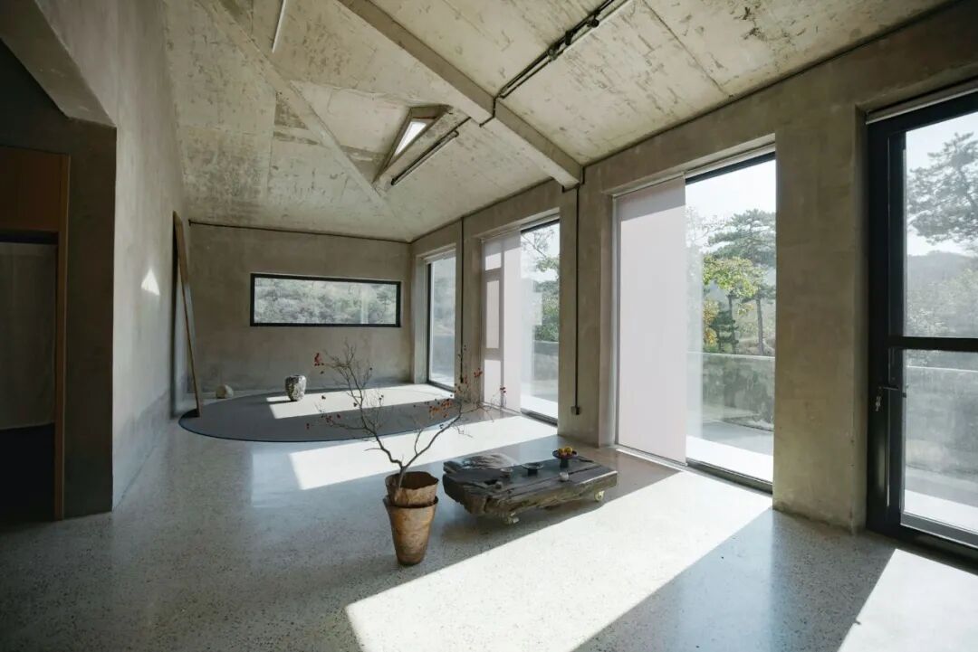 北京六环外的郊区,一片被10000多棵松树林包围的小山头上,有一栋红顶灰墙的水泥房,外观看起来仿佛还是在装修中的“半成品”,室内却美得像艺术品。