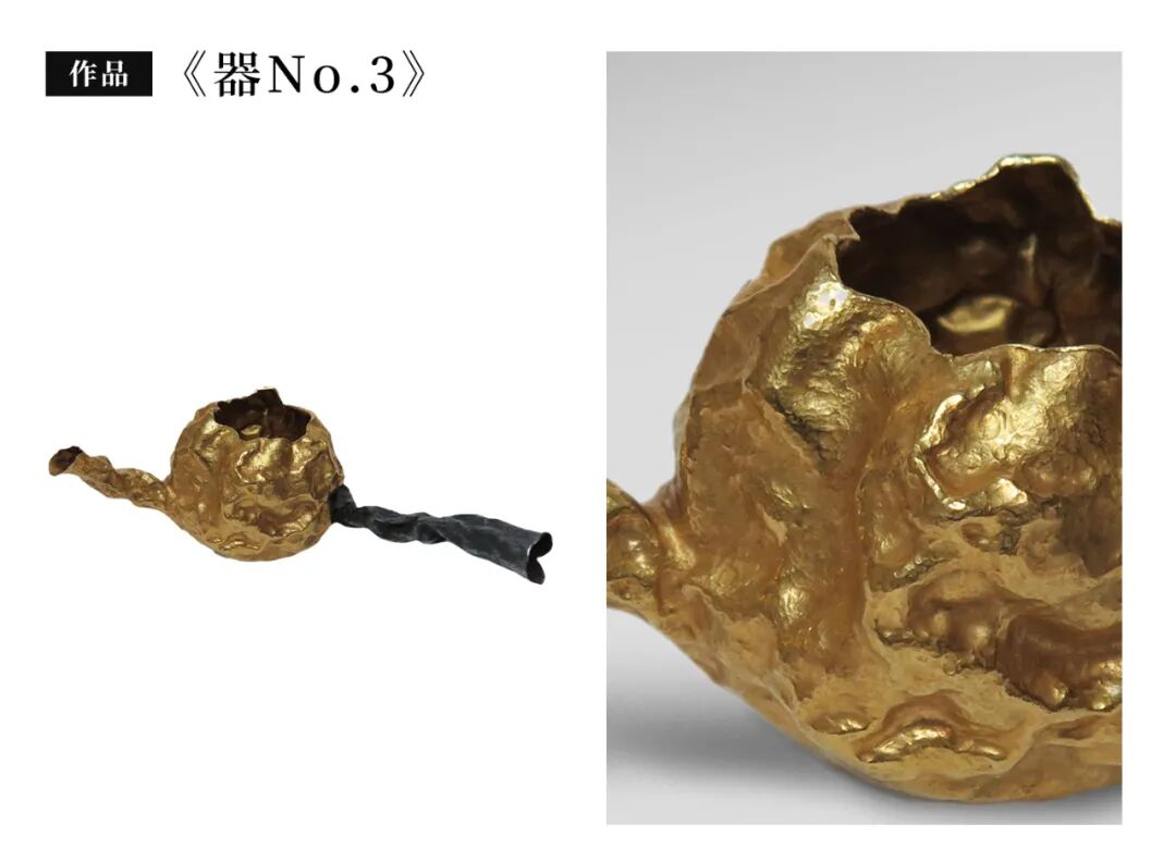《器》系列让汪旺获得了广泛的关注,一些作品也被博物馆永久收藏。有藏家在展览上看到汪旺的作品特别喜欢,专门订购几十公斤的黄金来找他打造茶器系列。
