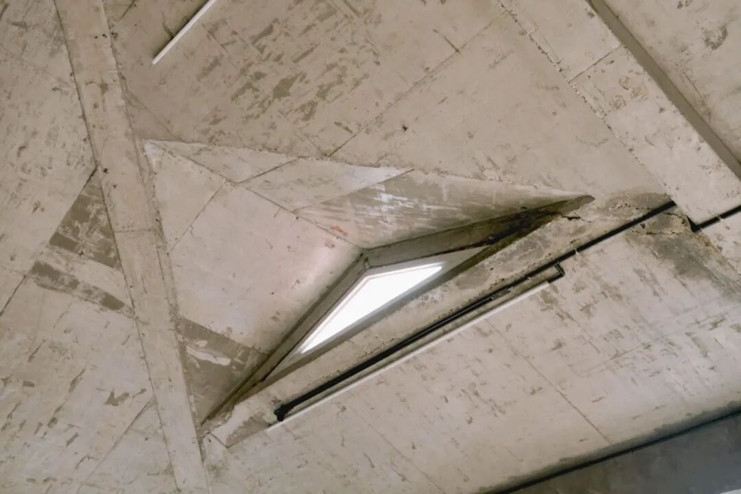 三角形的窗户在墙上投射下“雪山”造型的光影