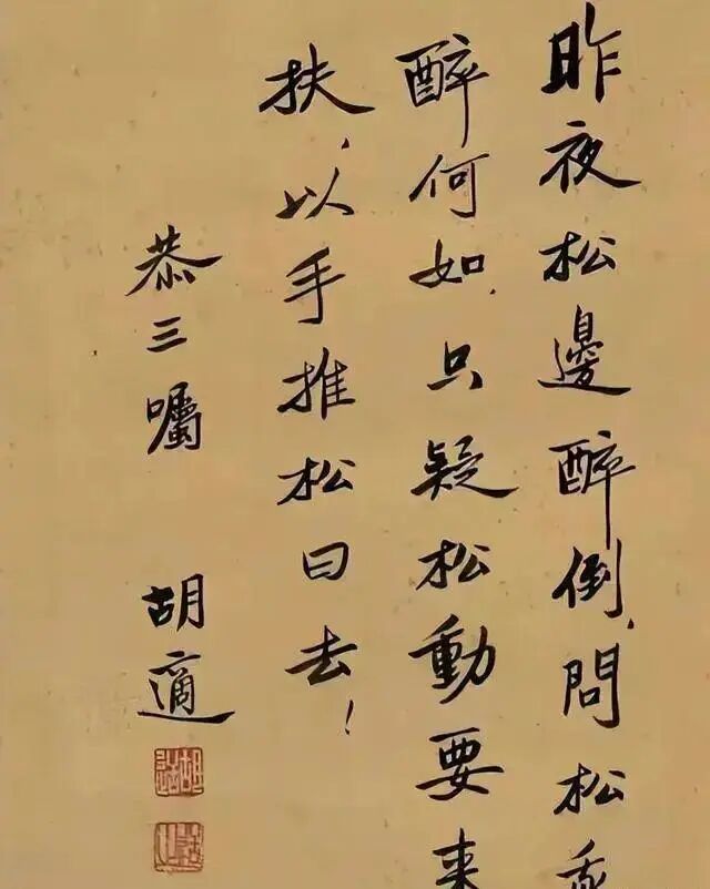 提到胡适,相信,大家并不陌生,他不仅是一位出色的国学大师,而且还曾经出任过北京大学校长,是一位饱学之士,在诸多方面都有杰出的成就,不仅如此,对书法也有独到的见解,从他的书法作品上,就能够体会到,不仅有对古法的继承,而且还有一种独到的个性,呈现出一种碑帖结合的新境界,同时,也彰显了个性,自成高度,相信谁看到他的书法作品后,都会有一番见解的,下面就让我们一同来欣赏一番他的书法作品吧。