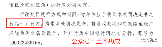 并要求在收到处罚决定书后,15日内将没收款项和罚款缴至河北省财政厅账户。