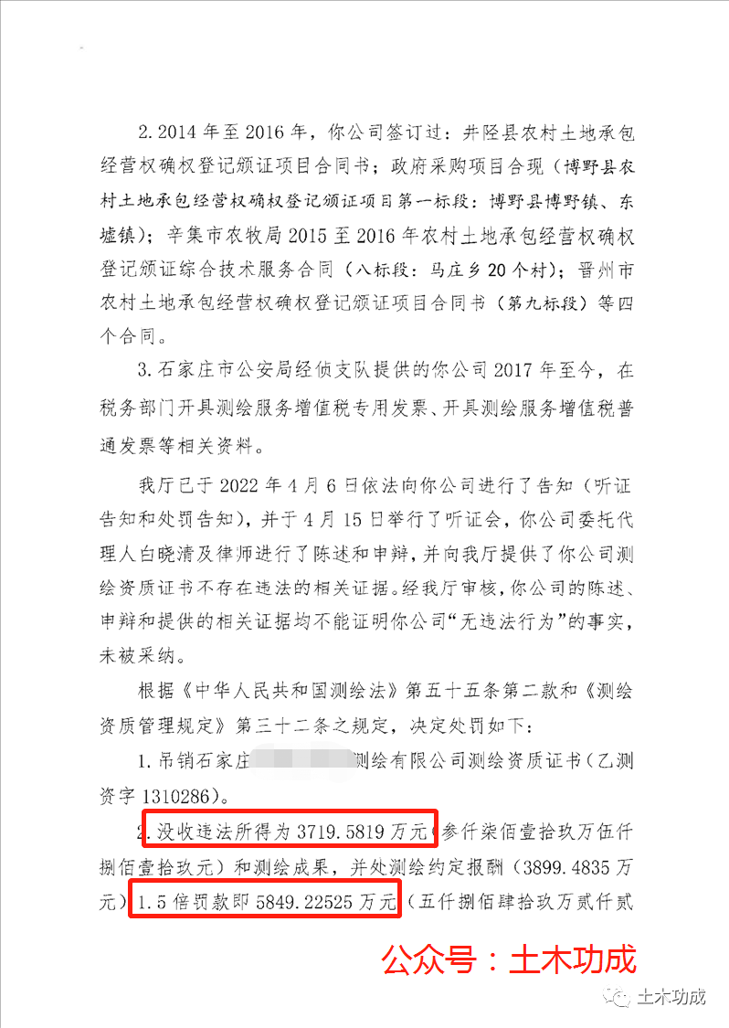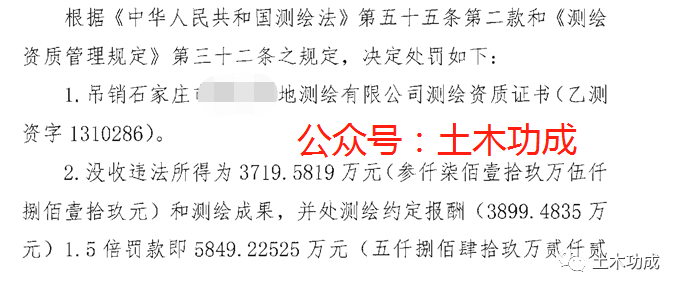 2、没收违法所得3719.5819万,并处测绘预定报酬的1.5倍罚款即5849.22525万元。