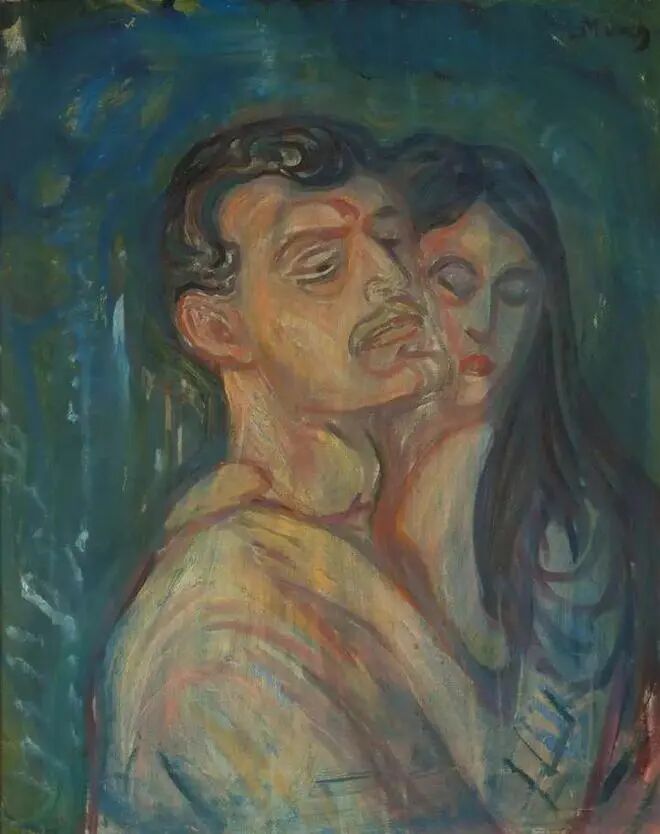 由于疾病的现实和死亡的悲剧,在画家心中必然要唤起对死亡的恐惧,但更重要的是,“并非因此要使我的艺术非表现丑恶不可。相反,我感到我的艺术要发挥健康的反作用”。所以,“爱”这个主题,才是蒙克追求的最终目的。