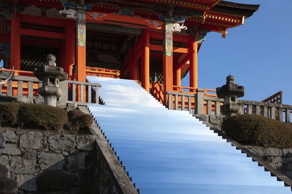 京都的清水寺已有超过1200年的历史。通向寺庙的阶梯,镜面角度经过精细调整,全部反射天空 © 摄影:Takumi Ota