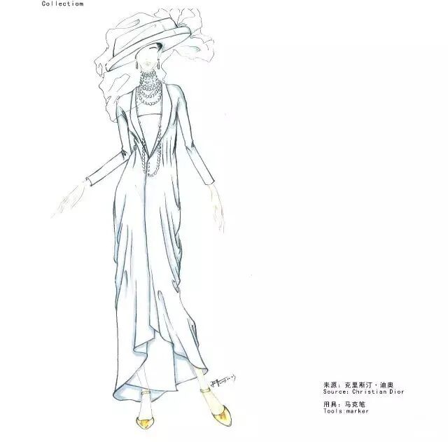服装画的成绩一般,但是算是意料之内,学服装画的时候我始终觉得我画出来的衣服,始终很僵硬,和人体的关系把握得也不是很好,明暗面也没把握好,所以没啥诀窍好分享,但是这些缺陷也可以作为大家之后学习要重视的地方(笑)。