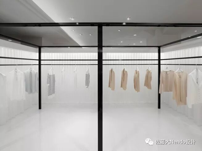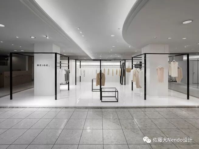 由日本服装公司Onward Kashiyama推出的新女装品牌BEIGE的店铺设计。该品牌的概念和名称来源于纺织纤维染色前的天然色彩,代表了其提供简单实用的女性设计的理念,同时以一定的俏皮精神汲取其材料的魅力。我们希望将相同的理念融入到店铺设计中,因此使用了三个标准元素 - 建筑和内部框架中使用的C形梁结构钢,隐藏它们的墙壁以及最后添加以遮盖凝视的窗帘 - 但是上翘他们平时的关系。一个框架区域独立于空间,被窗帘轻轻地遮住,白色的墙壁为窗帘提供光线。袋子的吊架杆,灯具,躯干和架子可以自由地添加到框架中,并通过重新定位来灵活地重新配置商店的空间。该设计以简单的方式使用普通材料以提供强大的功能,并且“重新洗牌”材料之间关系的想法所固有的俏皮性有效地汲取了它们的魅力。