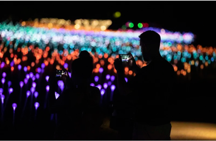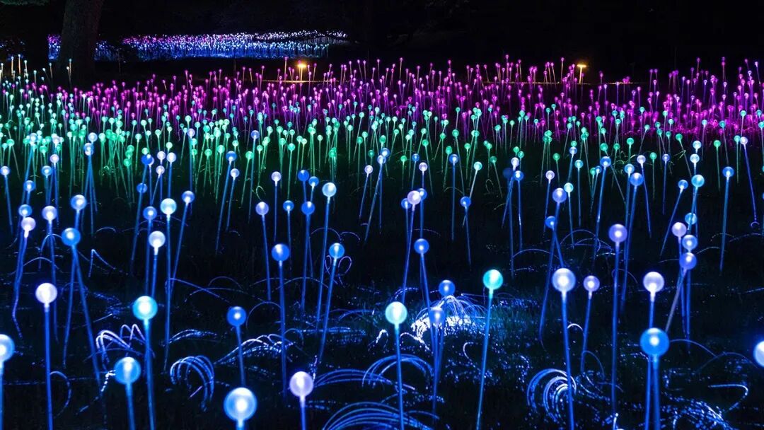 今年,长木花园夜游灯光秀邀请了布鲁斯·门罗(Bruce·Munro)作为总设计师,他是拥有英国、澳大利亚双国籍的著名艺术家,以制作大型沉浸式特定装置而为人知晓。在自然环境下通过光影与观众创造情感反应,是他的核心创作理念。