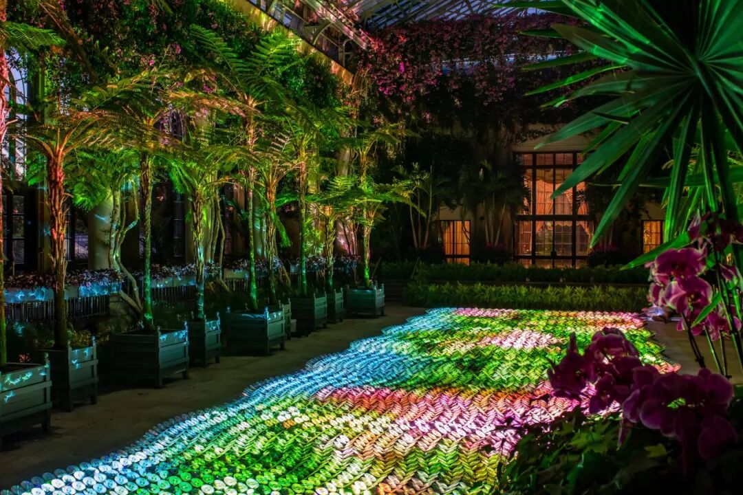从2022年6月30日至10月30日,为期四个月的夜游灯光秀以“回归光明”作为主题,结合户外与室内,打造了一场融合光线、风景和想象力的花园展览,给游客留下了令人难忘的花园体验。