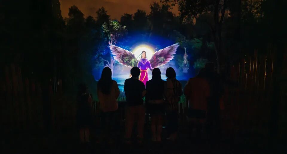 投影技术将栩栩如生的画面带到游客眼前,无论是在丛林中游走的仙子,还是会讲话的古树,都加深了游客与大自然间的互动感。