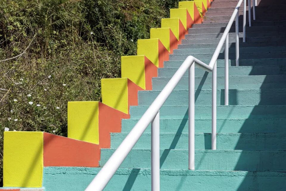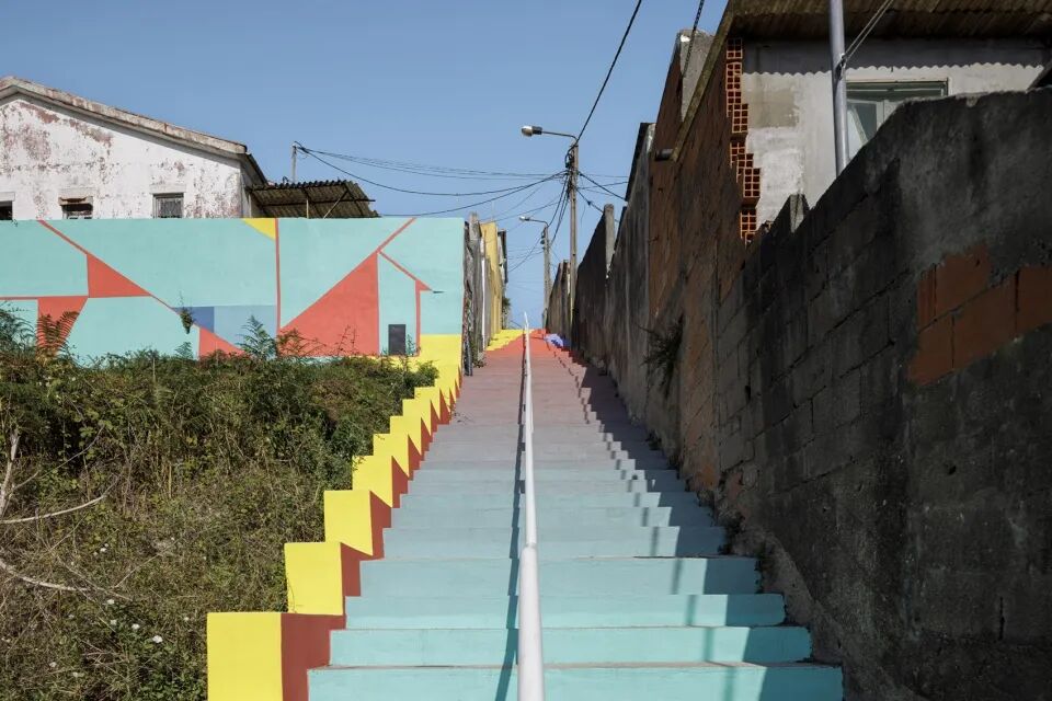 历时一年,过程中汇集了由建筑师、当地建筑商、艺术家以及众多合作伙伴组成的多学科团队。在建筑工程的第一阶段,项目主要对通往Escadinhas大街的台阶进行了修复,这是一处连接Monte Xisto西山山顶与山脚的城市设施。台阶与扶手在项目中得到修复,公共的步道与毗邻的私人土地之间通过长椅的设置建立了新的边界,使台阶可以作为一个休息场所。
