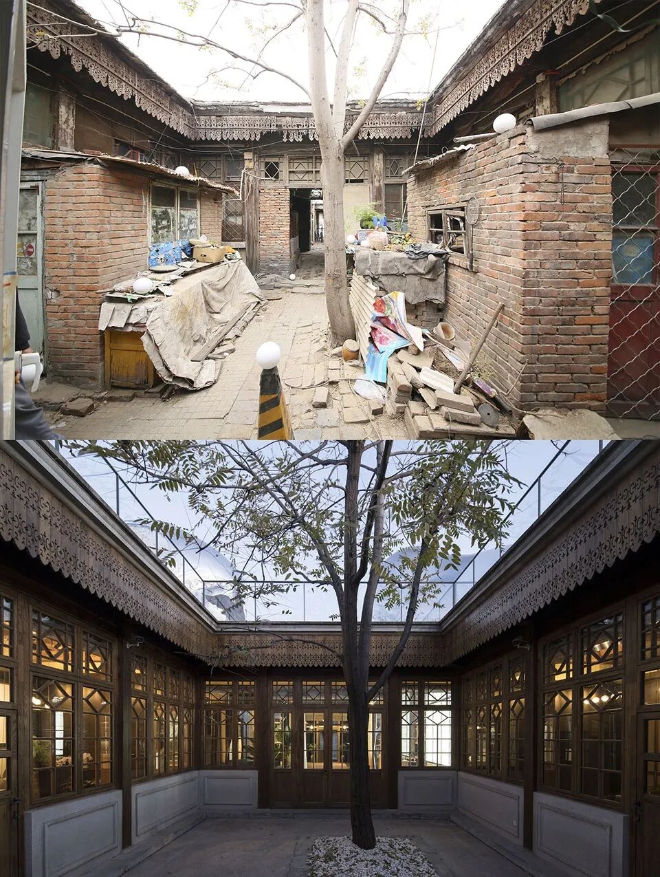 这是一种“微观乌托邦”式的理想,建筑师希望这些“泡泡”像新生的细胞一样具有生命力,赋予老建筑一种活力,并通过改变局部而达到整体社区的复苏。2009年,建筑师首个“胡同泡泡”在北兵马司胡同32号成为现实;十年后2019 年,“胡同泡泡218号”建成。西打磨厂街218号院的修复、改造,起源于2014年由天街集团、天安时间当代艺术中心以及北京市建筑设计研究院共同主办的旧城更新研究计划“城南计划——前门东区2014”。
