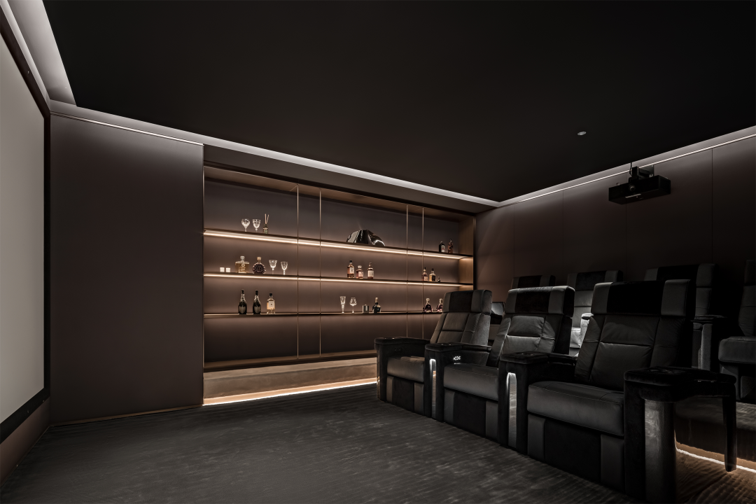 影音室以简洁纯粹淡化空间属性,材质、灯光与艺术的融合,阔奢气氛弥漫其中,带来更优观感。