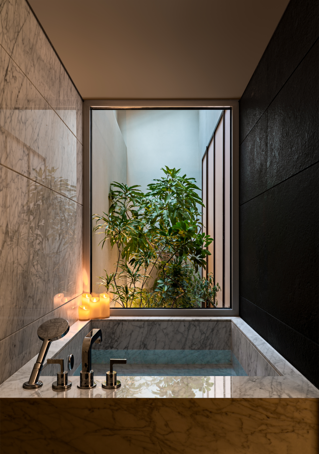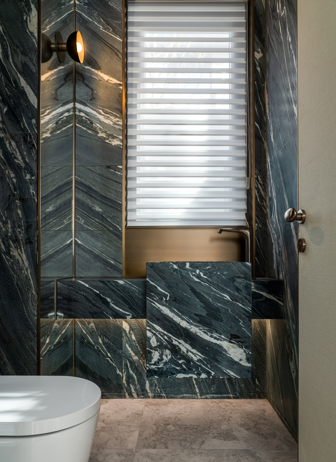 大理石的自然肌理嵌入金属,营造别具一格的公卫质感,时尚又不失个性。