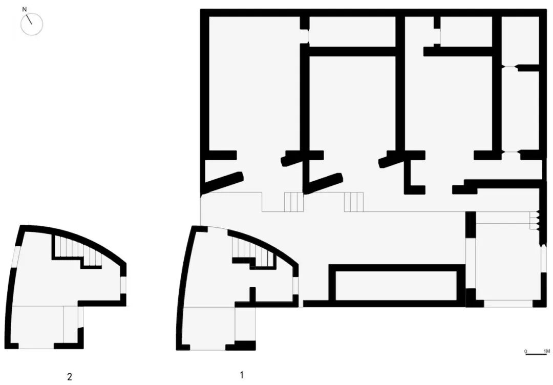 院子的北侧是老宅的一间大屋,有三间房,每间房的入口朝向均设计了15度转角,既保证视线的私密性,每间又都可以望向东南侧的群山,随着一天日照方位角的轨迹变化,墙面与院落会形成不同时段的光影景象。设计借原有南侧围墙拆除位置新建一方水池。清早,雾气未散尽,日头刚打东边升起,在院子里四下漫步,群山一览无余,余韵悠然。