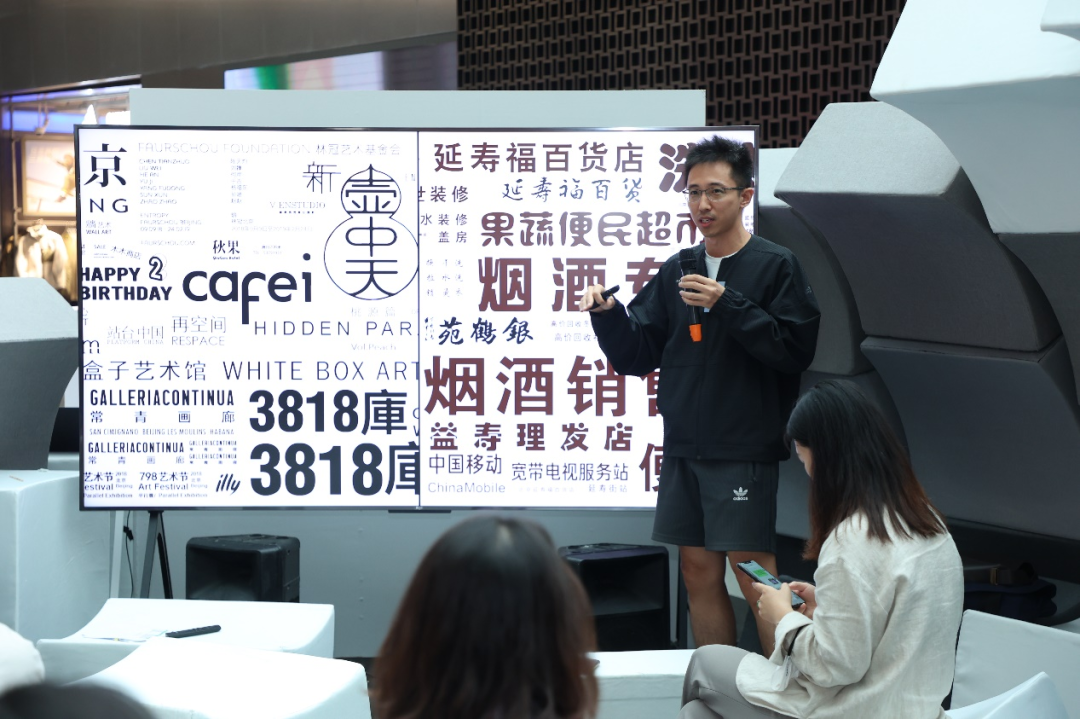 宋壮壮谈到,相较于住宅街道,商业街道和商业空间中有更加大量的文字信息需要跟消费者沟通传递。他以其所进行的独立项目为例,向现场观众阐述了文字作为媒介在北京的商业街中起到的角色,以及文字跟城市空间之间的关系。