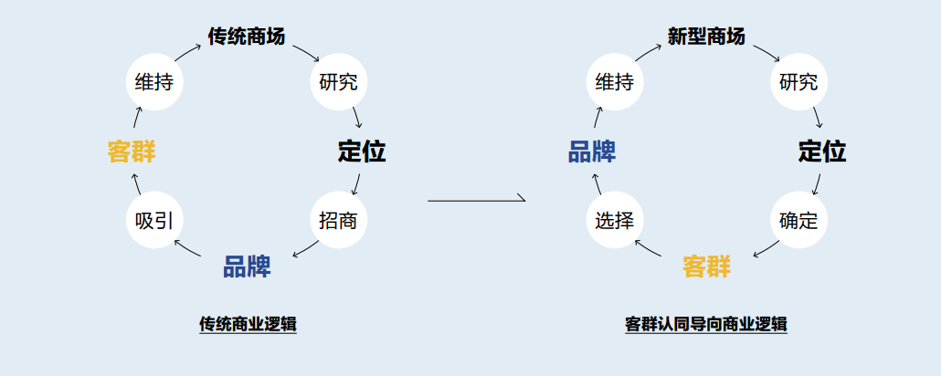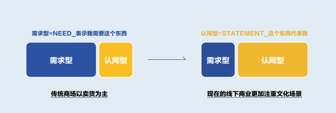 如何跳出这种简单购物和体验需求满足思维呢?徐霆威认为未来商业将从“需求型”商业向“认同型”商业进行转变。未来真正有价值的商业目的地绝不只是简单满足消费需求的购物场所,而是应该打造和消费者生活方式与三观一致的认同型城市场所。即对消费者来说,选择一个线下商业目的地不再是因为“我需要买个东西”;而是这个场所代表了消费者的生活方式,所以他们愿意持续把时间花在这个地方。