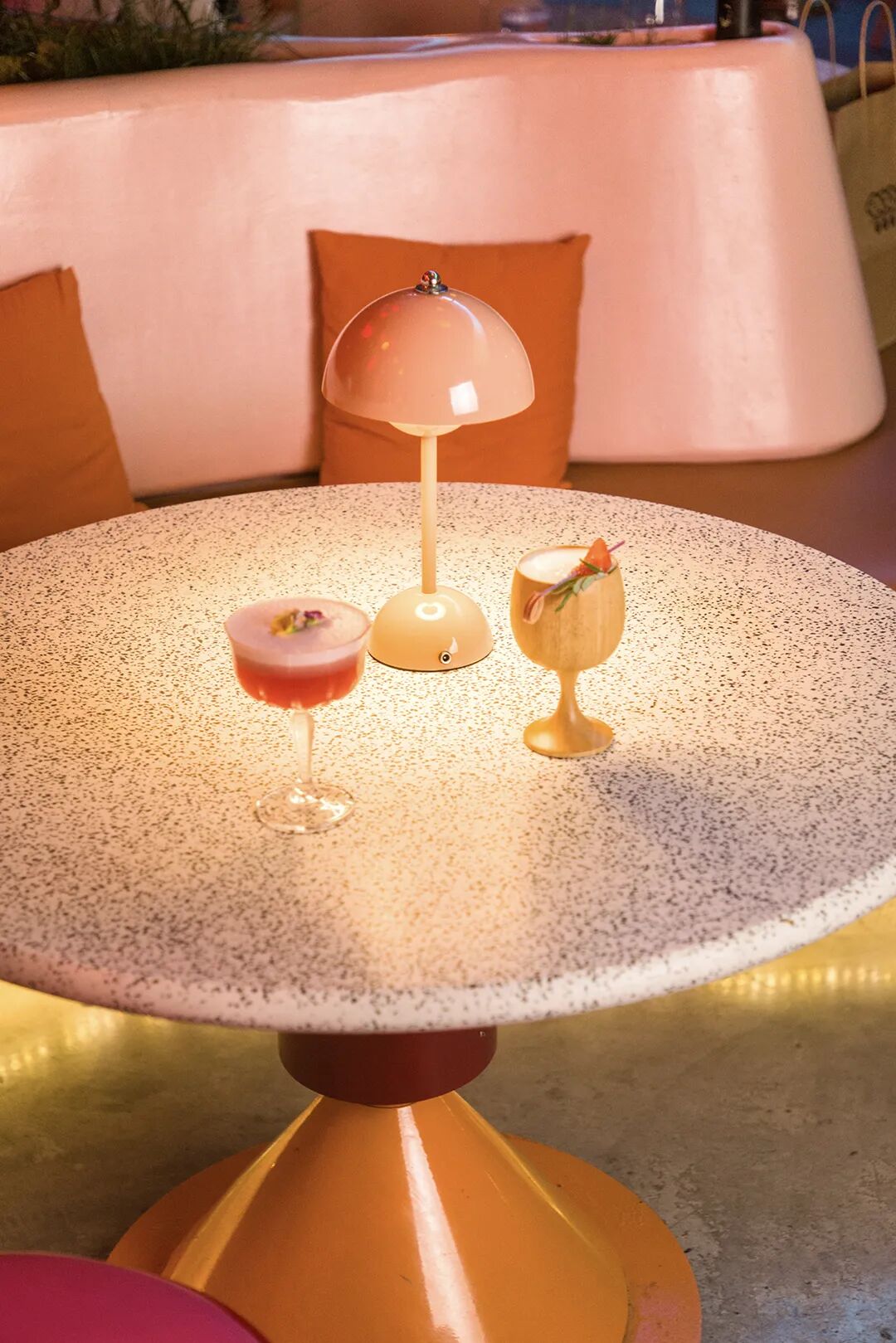 这里的沙发、灯光、台灯都是粉色的,超级适合浪漫的日子相聚。