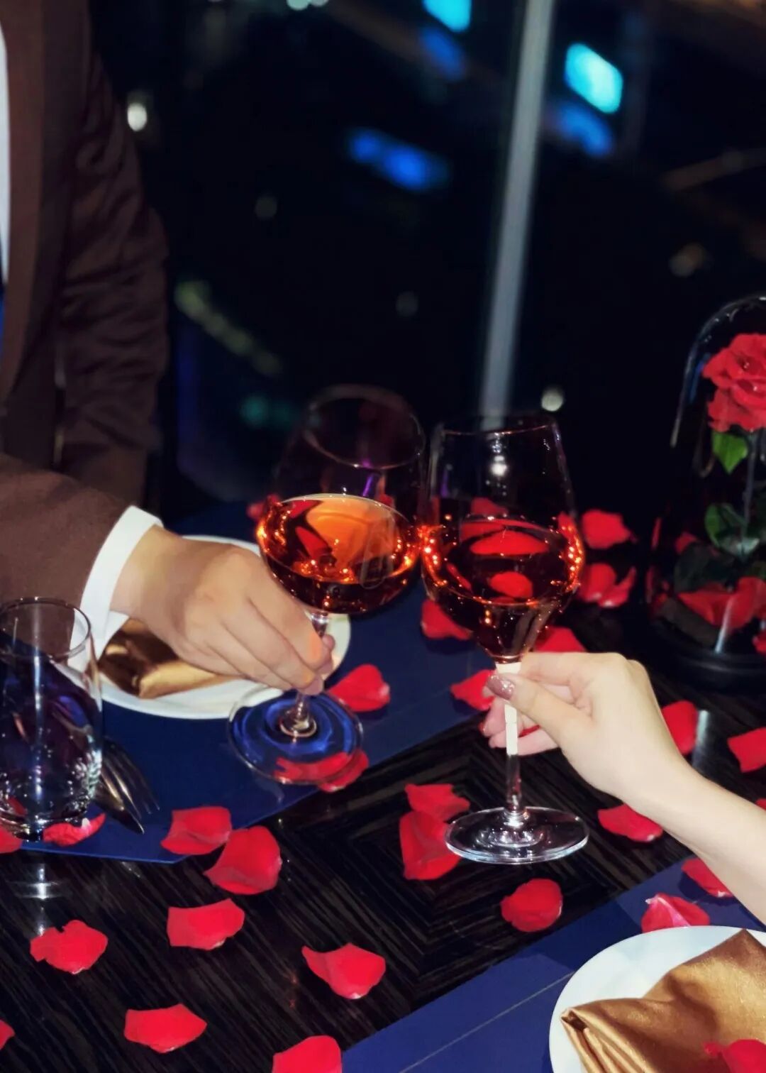 上海滩露台七夕双人小桌台带来海派甜蜜,到店用餐女士均可领取玫瑰花一支;