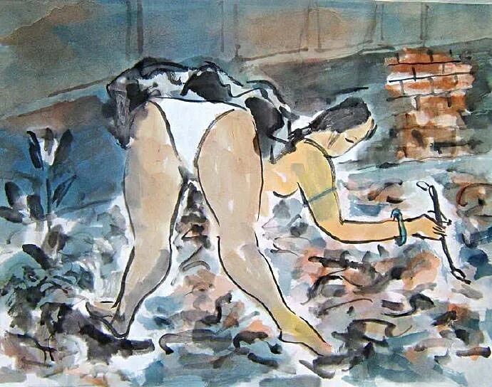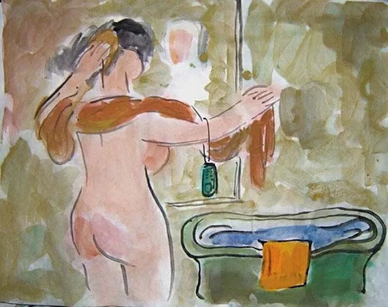 老刘画的样数很多,但我最看好他画的是女人画(他不属于专画女人体),尤其是着色的女人画。