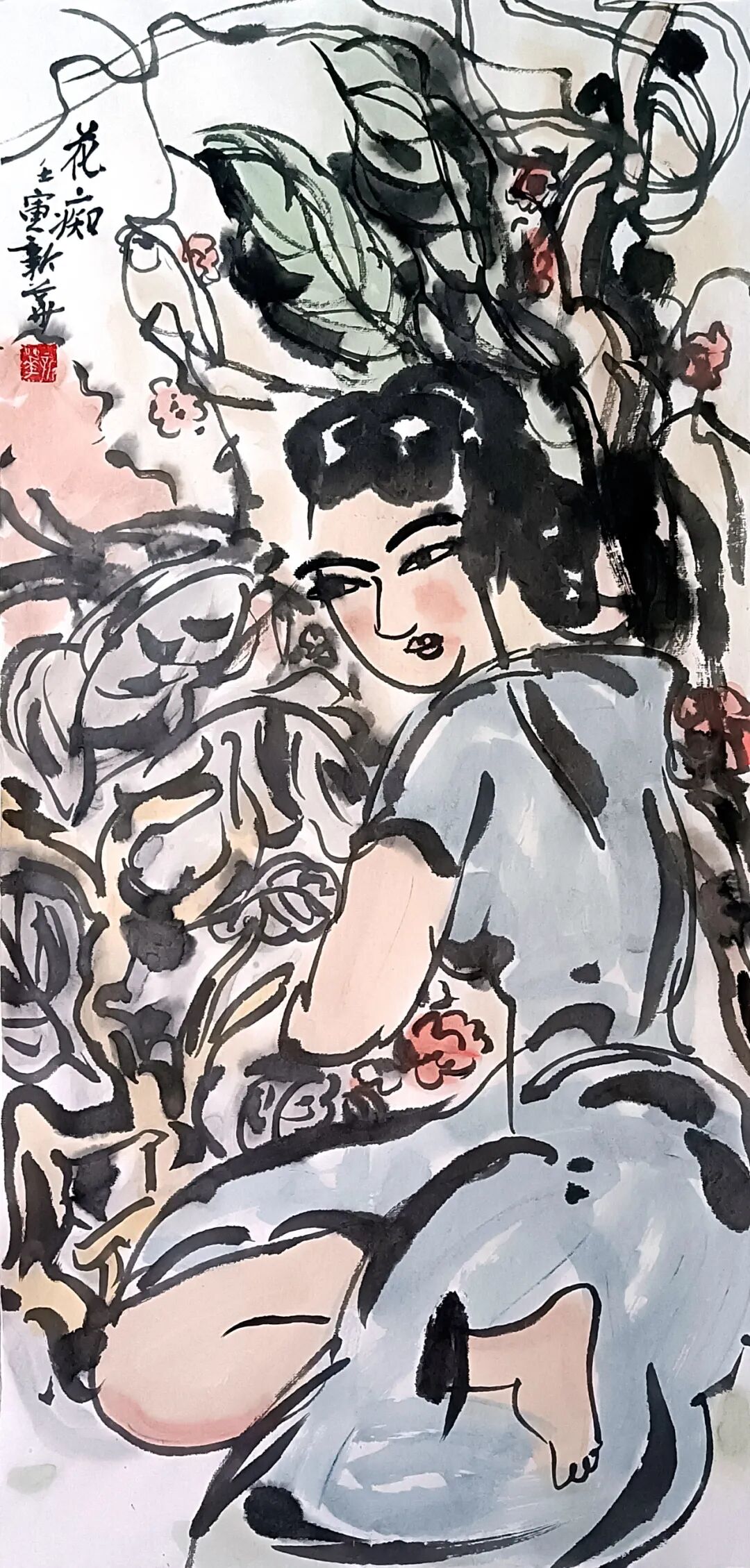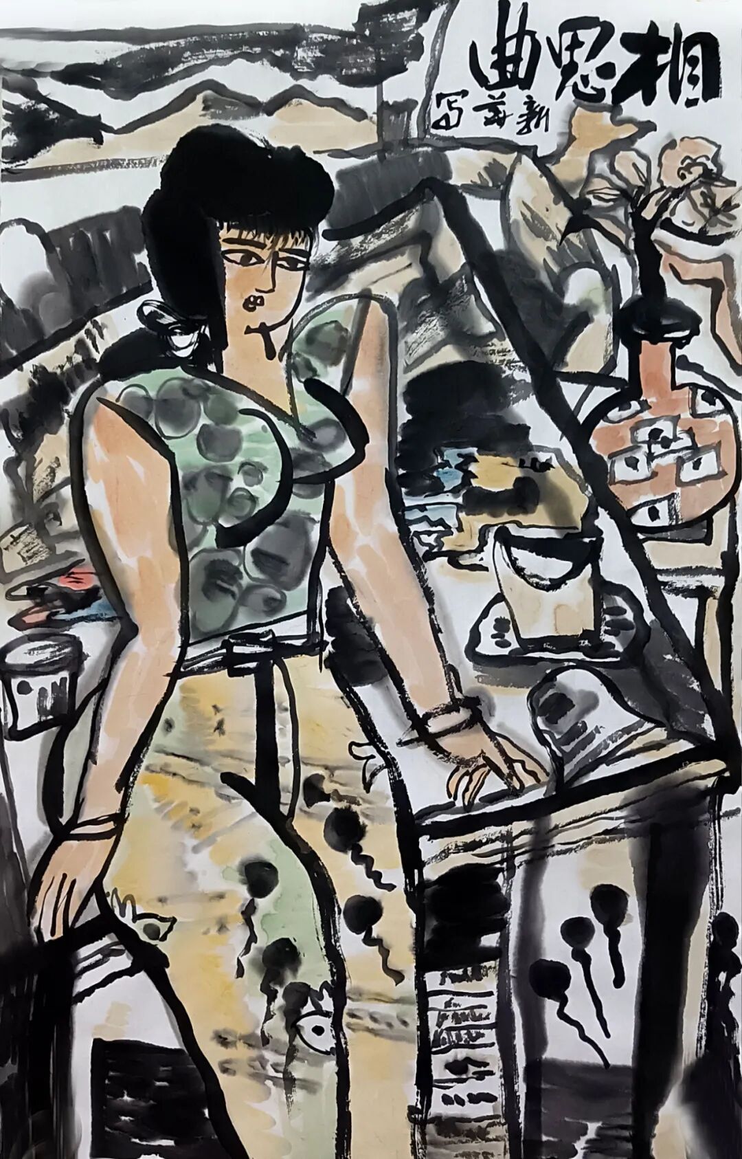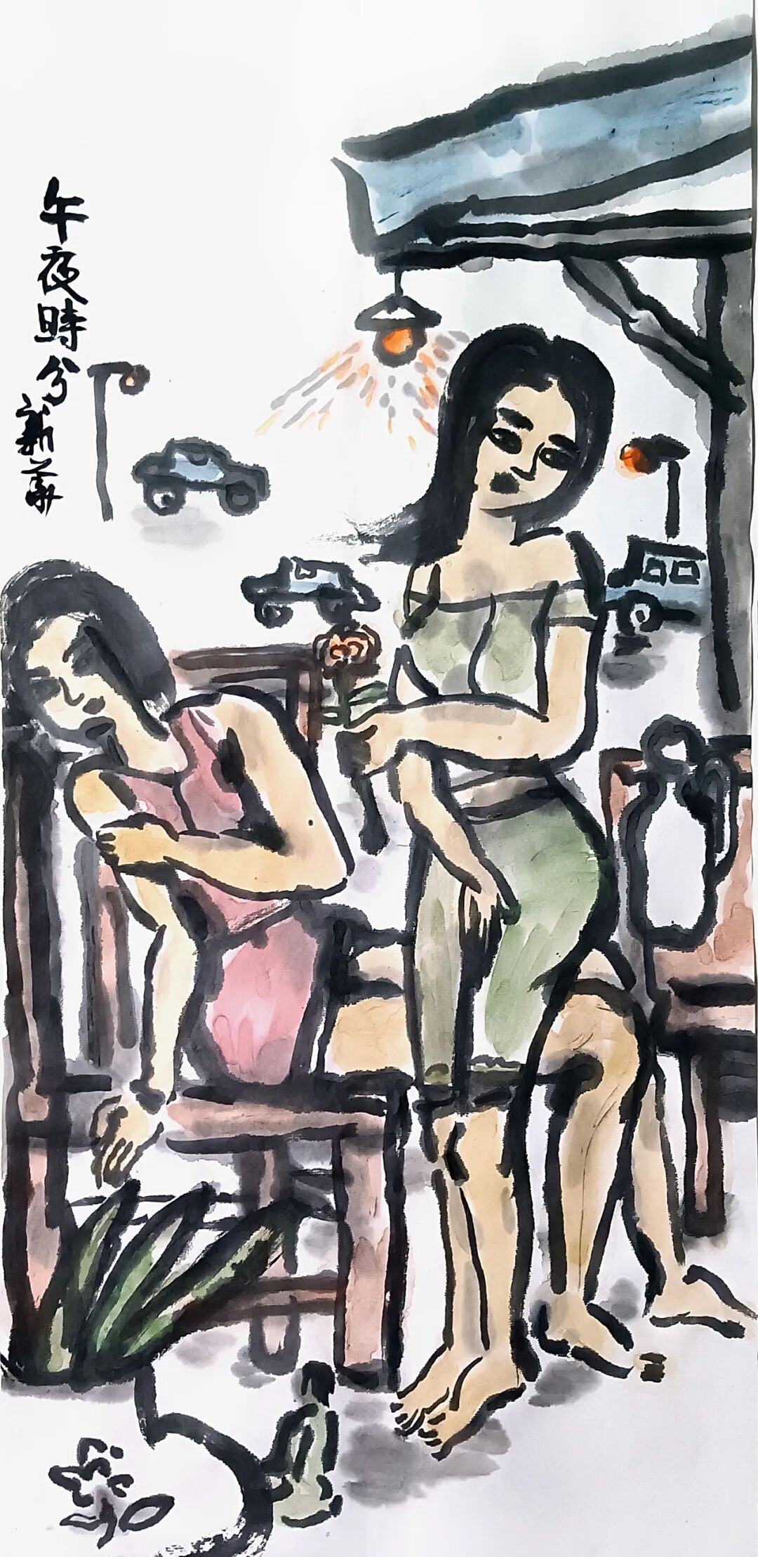 老刘做的好,他画的女人画,绕过了朱新建。尤其是他的色彩女人画,不仅绕过了朱新建,而且,出彩了。