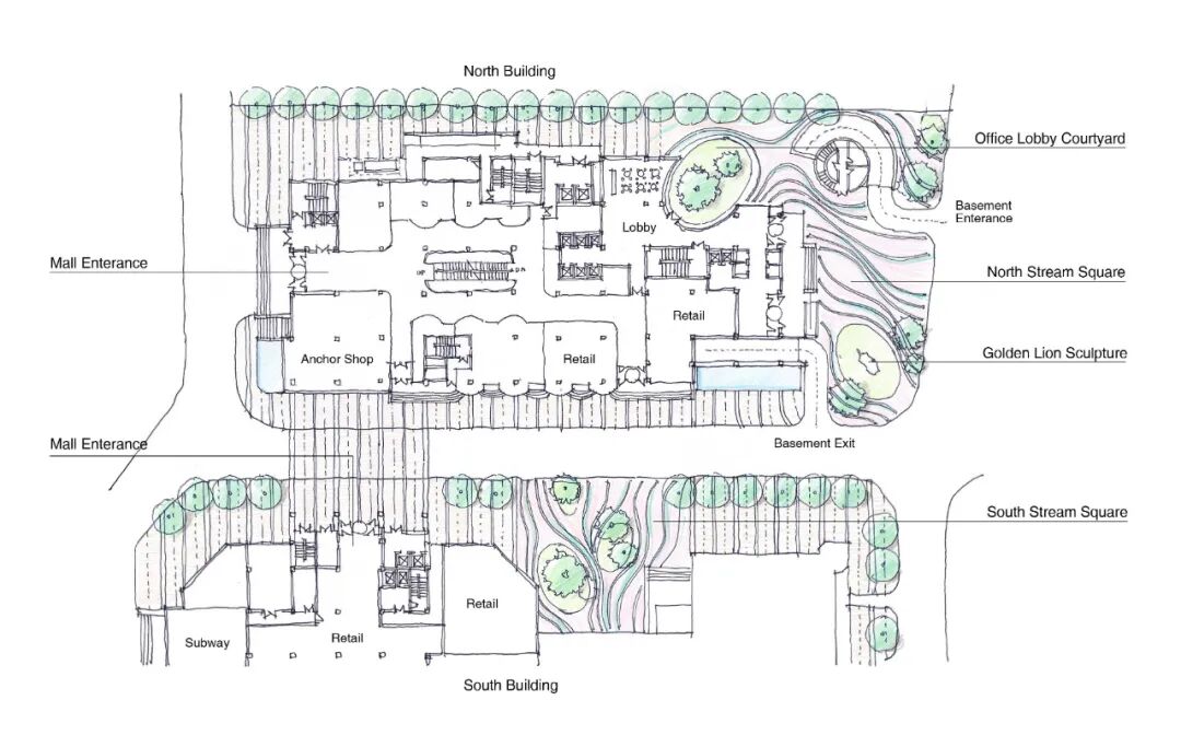 随着时代发展,金融街南部片区亟待发展提升,而百盛购物中心复兴门店响应号召,力图通过对北楼的室内外改造,将原有的百货大楼升级为金融属性写字楼——金狮金融中心,在融入并提升金融街整体环境的同时,补充完善片区的功能布局,打造新时代科技金融中心。