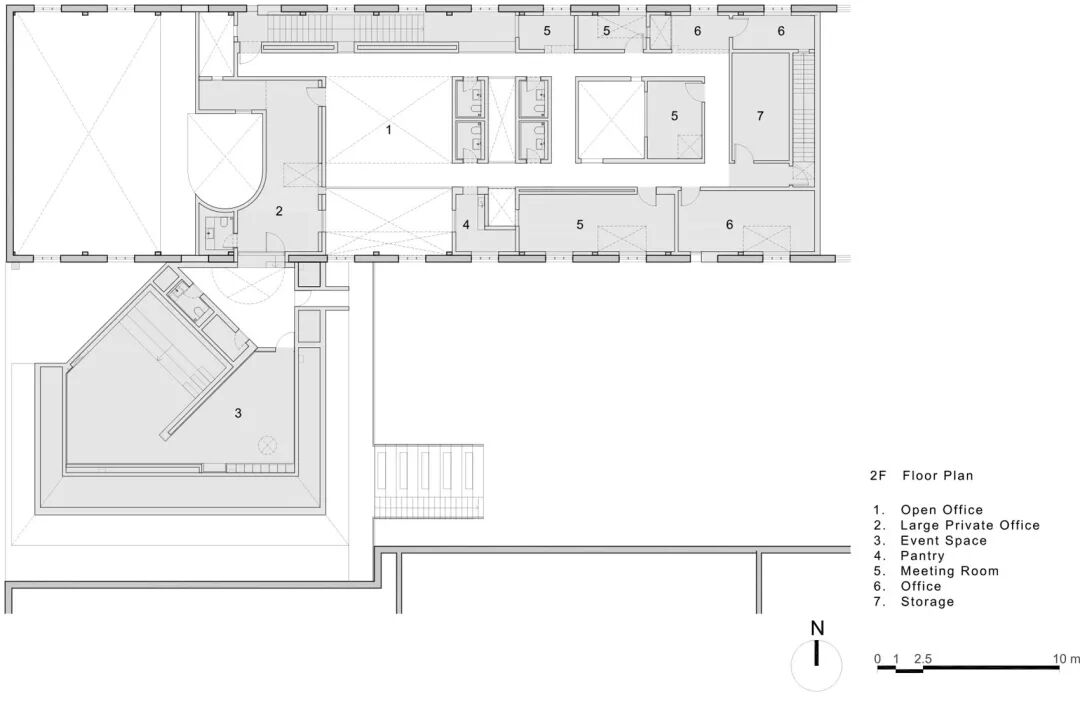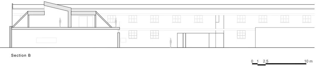 一以贯之的砖墙结构连接并构成了旧建筑群中的主仓库、三栋附属建筑和一座庭院。对于改造项目,如恩系统性地研究了旧建筑中应当被保留与修复的部分,新旧并置时,相互融合又独具一格。