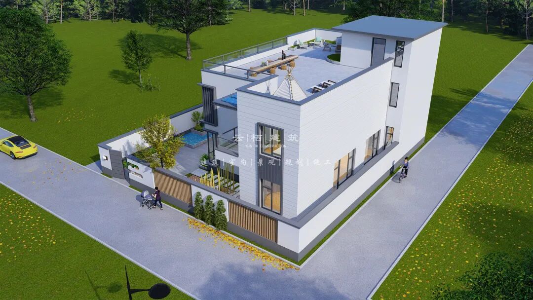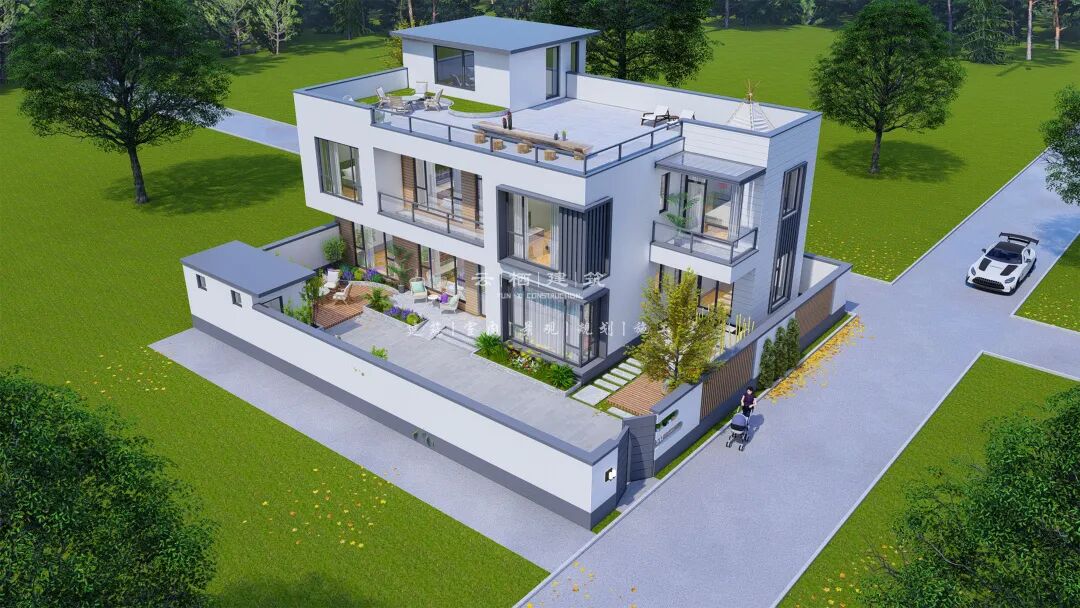 该项目位于北京平谷,主体为二层+屋顶露台现代别墅。