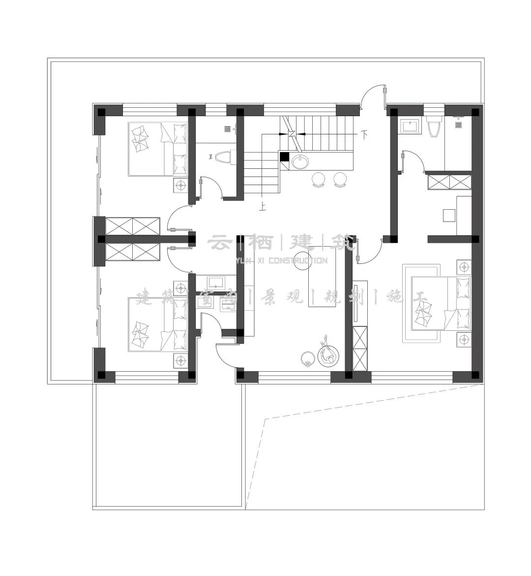 总共设计了四间卧室,二层东南侧为主卧,配备了衣帽间和卫生间,宽敞且舒适。西侧两间客房,对外封闭式阳台,也可用于晾晒。