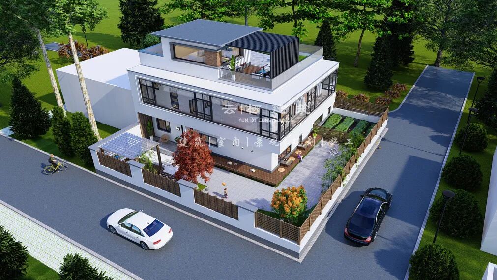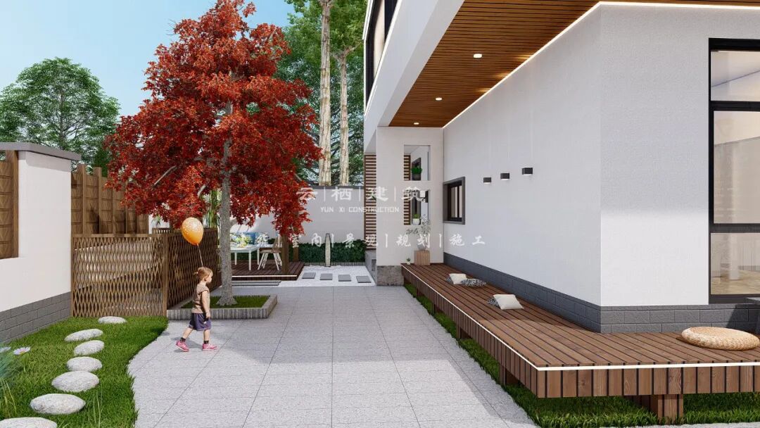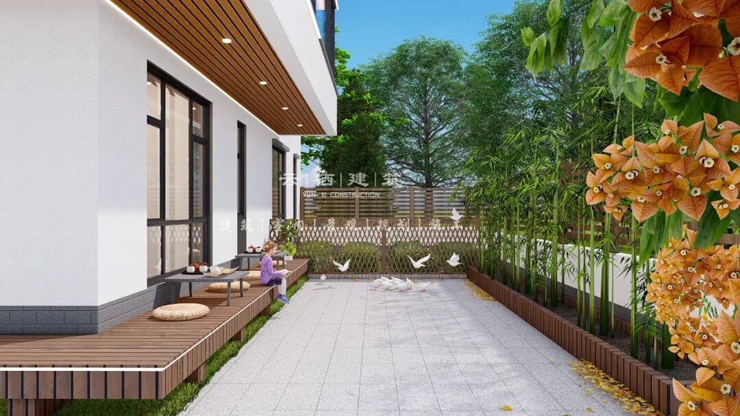 外庭院结合外挑封闭阳台做了户外休闲区,满足日常户外活动需求、同时西南侧预留了一块菜地,可种植四季果蔬,庭前种菜,院后栽花。
