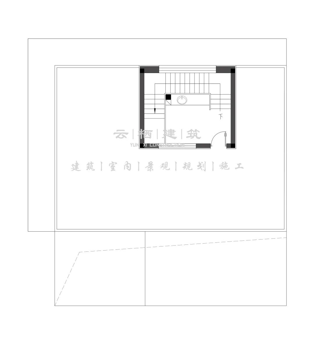 楼梯间直接做到屋顶,解决竖向交通空间,结合楼梯间做了一个半室外的雨棚空间,增加实用性。