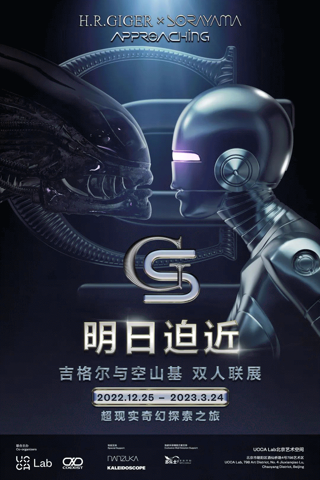 2022 年 12 月 25 日至 2023 年 3 月 24 日,UCCA Lab 携手 COEXIST 共凝文化于 UCCA Lab 北京艺术空间呈现汉斯·鲁埃迪·吉格尔与空山基中国首次双人展“吉格尔与空山基:明日迫近”。