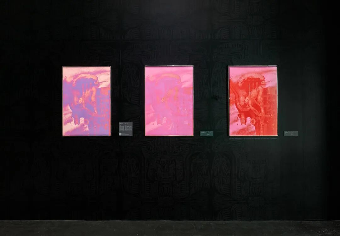 (左)汉斯·鲁埃迪·吉格尔,《出自〈提宏之旅〉作品集,1》,1970,纸上丝网印刷,100 × 70 cm;(中)汉斯·鲁埃迪·吉格尔,《出自〈提宏之旅〉作品集》,1970,纸上丝网印刷,100 × 70 cm;(右)汉斯·鲁埃迪·吉格尔,《出自〈提宏之旅〉作品集,2》,1970,纸上丝网印刷,100 × 70 cm。©汉斯·鲁埃迪·吉格尔遗产。图片由UCCA Lab提供