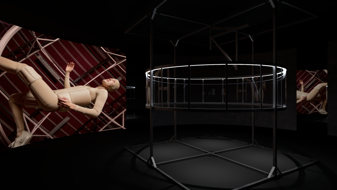 孤独研究所,露西.麦克雷,2016,彩色数字影像,有声,9分38秒,微重力训练器 (涂漆钢,聚碳酸酯)