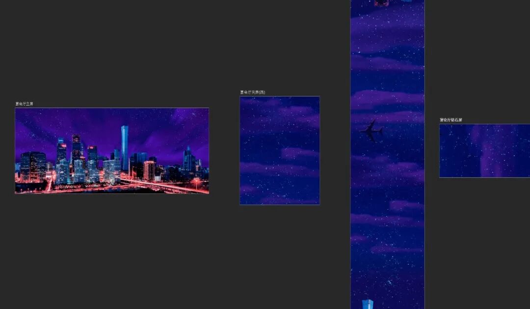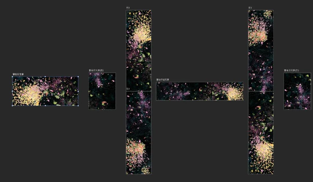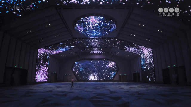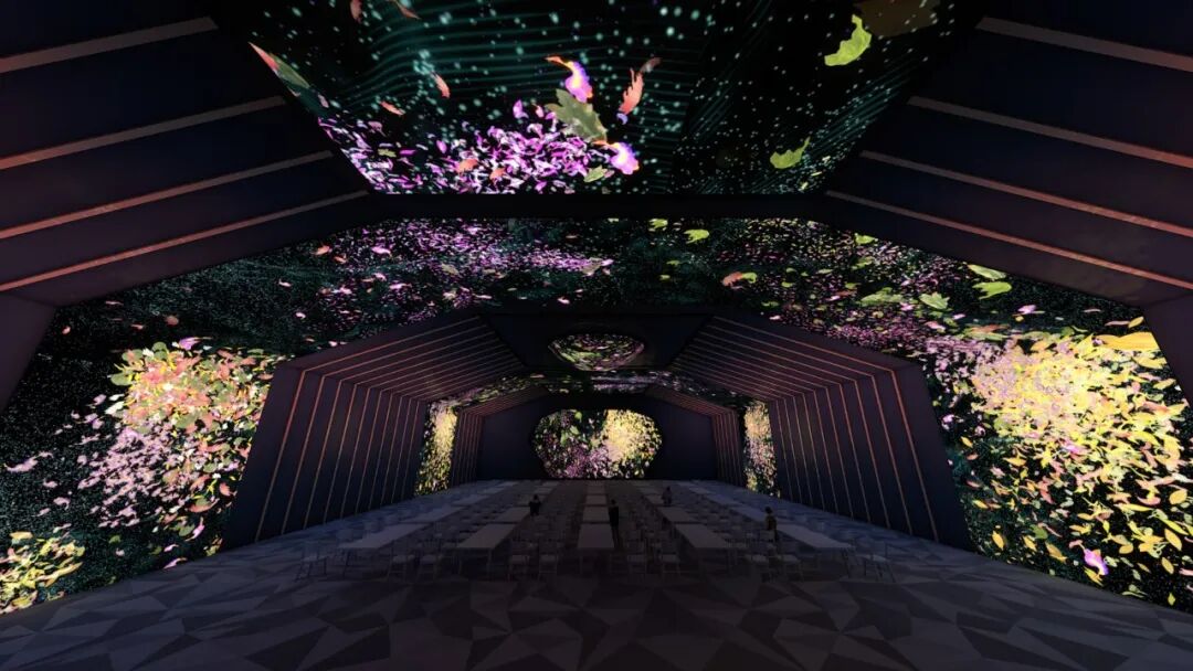 “天鹅湖”主题呈现的是夜空下的天鹅湖美景;纵览全观”主题展现出时代发展所激发向上的活力与广阔的视野,富有对于企业年会活动等场景渲染与氛围烘托具有极高的适配性;“城市和弦 ”打造城市流动光影盛宴;十二花神 ”主题通过花瓣与花朵的飘扬飞逸充满整个空间,营造出梦幻华丽的视觉效果;“星空 ”主题使用数字技术生成游移在宇宙空间中绚烂的星辰与气流,给人视觉刺激的高潮,使人沉浸在宇宙之间的氛围感。